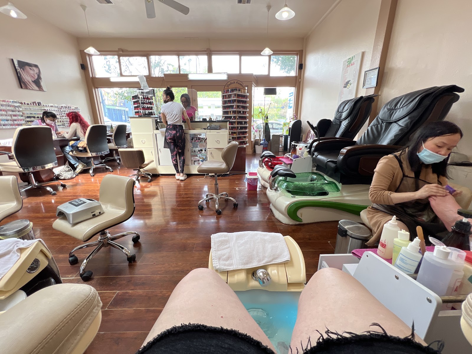 "Amazing prices, friends staff, and incredible service. The man that did my pedicure was very polite considering how ticklish I get and gave me the best pedicure massage of my life. The woman who did my shellac was a pro and even stopped to give extra attention to my pinky blemish. I was able to walk in on a Sunday and get immediate service. Definitely going back!"