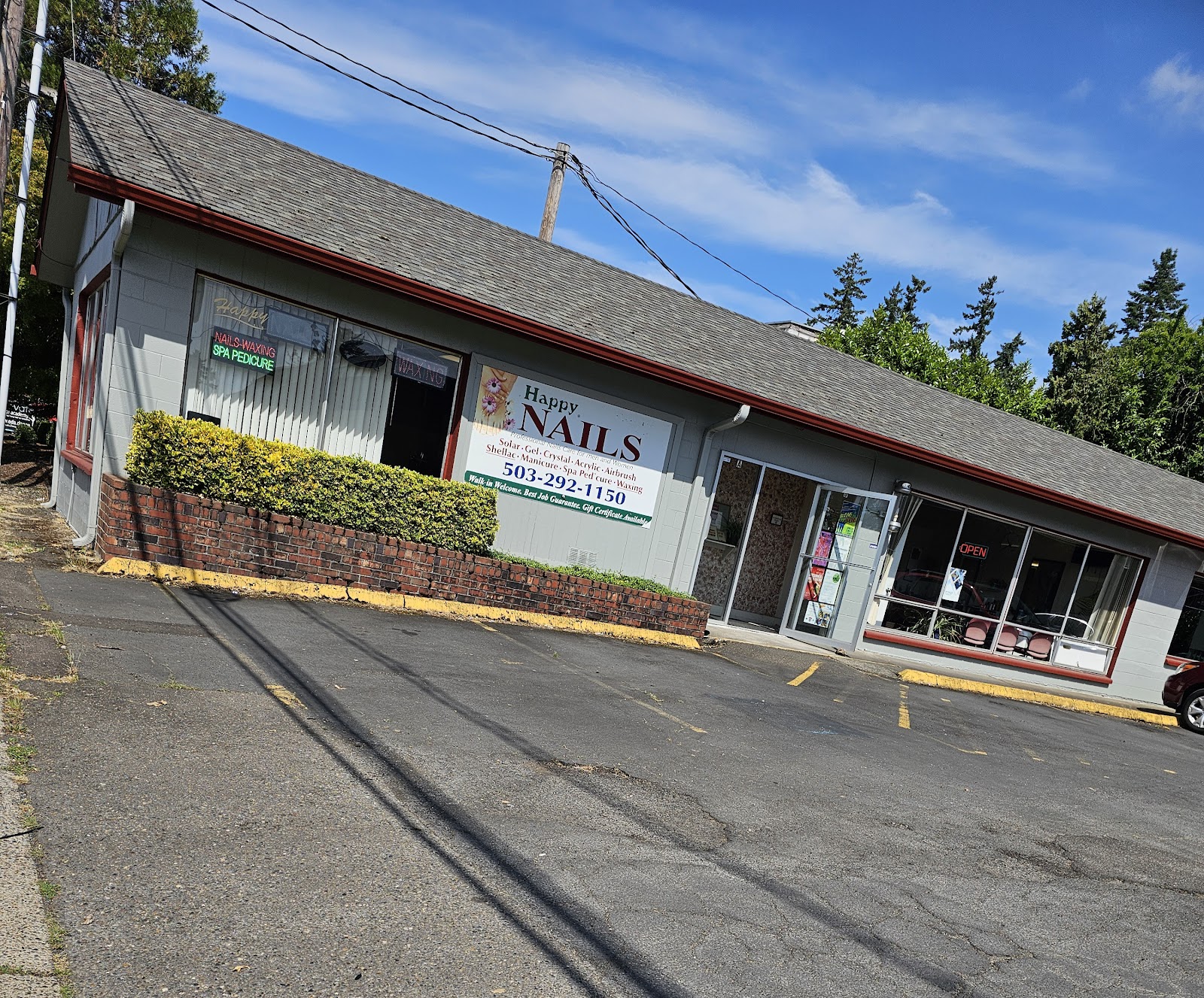"Just moved from LA, and was dreading having to find a nail salon. Happy Nails went above and beyond my expectations. Friendly staff, one of the best and most efficient pedicures I have ever had, and my shellac mani lasted almost 4 weeks! The prices are also extremely reasonable. This business may not have perfect “curb appeal” but with superb quality of service, who really can complain."