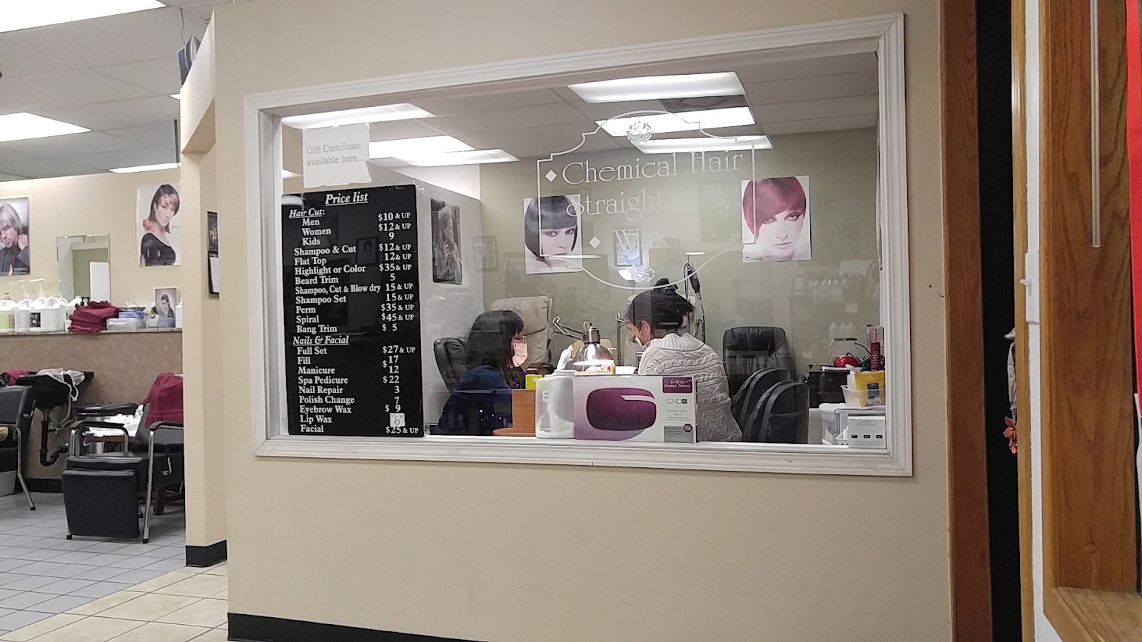 "First time to the shop, very clean and super friendly staff, very affordable & great deals on products. Had my hair cut & colored, eyebrows waxed & a pedicure. I love my hair, did an amazing job with my pedicure and brows, can't wait to go back😁 Highly Recommend them for all your hair & nail needs!!!"
